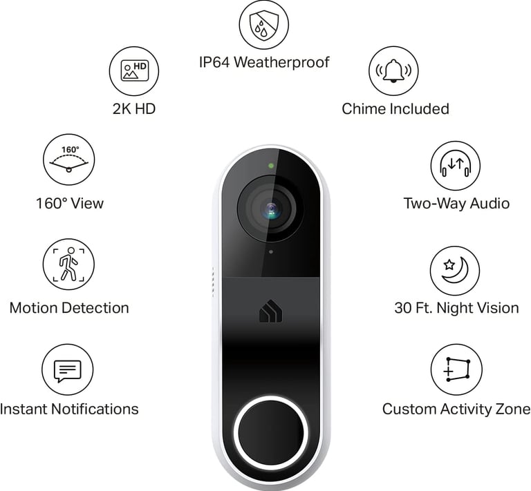 The Kasa Smart Video Doorbell KD110 presents formidable features that elevate home security to an exceptional level. One of its most striking attributes is the crystal-clear 2K video resolution, which offers sharp and detailed images. Whether it's during daylight or nighttime, the enhanced resolution ensures that every face, package, or movement in front of your door is captured with remarkable clarity. This significant feature allows homeowners to easily identify visitors or suspicious activities, bolstering peace of mind regarding home safety.